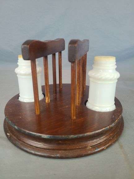 Various Knick Knacks - Wooden napkin holder w/ S&P shakers; (2) Egyptian design vases; assortment of other glassware; cutting board; gold candy dish on pedestal