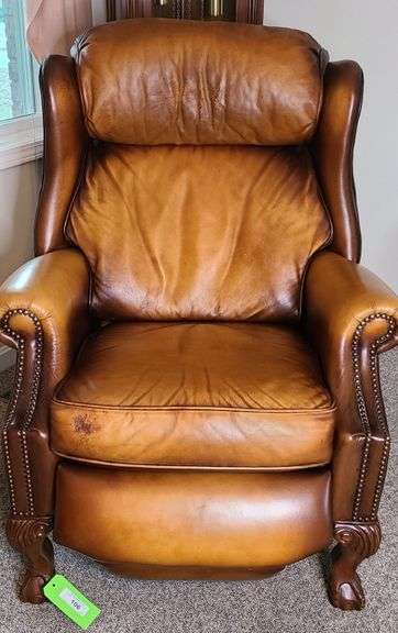 Brown Leather Cigar Reclining Chair, Latitudes Collection by Flexsteel, worn areas shown in photos