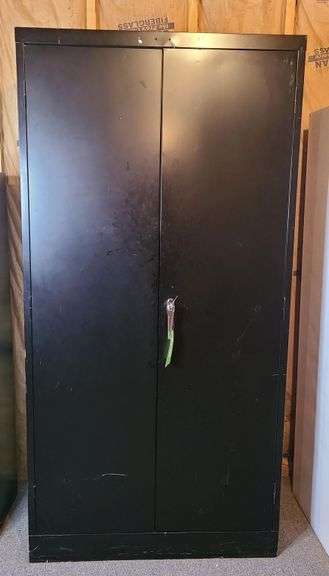 Black 2-door Metal Cabinet w/ 4 shelves, measures 72"x36"x18"