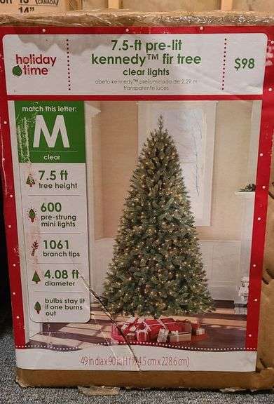 Green Pre-lit 7.5' Christmas Tree (lights work), 7' rope light tree, & numerous other decorations in box