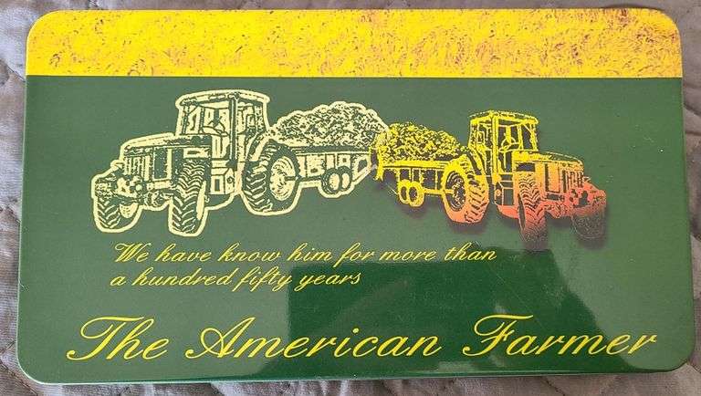 4 John Deere Collector's Knives, over 150 years celebration collector's tin, The Ammerican Farmer