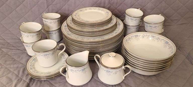 Lenox Porcelain Bouquet Collection Bluets Dishes: 10 Dinner Plates, 4 Salad Plates, 4 Bread Plates, 7 cereal bowls, 9 coffee cups, 4 saucers, sugar & creamer