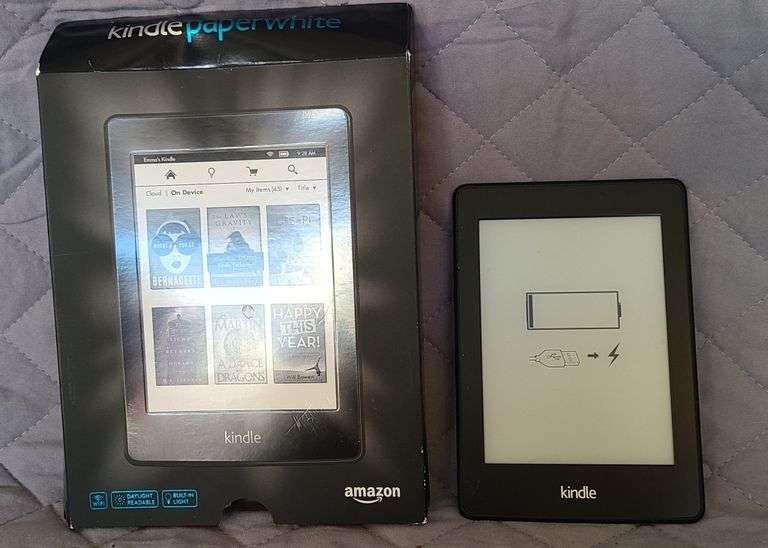 Includes Amazon Kindle Paper White and HP desktop computer.