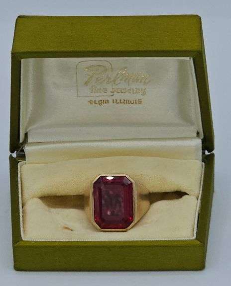 10 kt gold ring with synthetic ruby. Size 12 1/2.