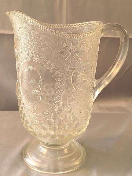 Vintage Early American Pattern Glass, Admiral Dewey Spanish-American War commemorative Pitcher