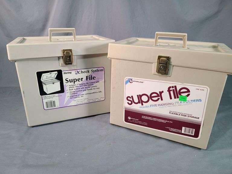 (3) Hanging File Folder Boxes; Purple Storage Locker, plastic Shelving Trays, Dictionaries, 1994 large Street Map of Louisville, Envelopes & other Office Supply items
