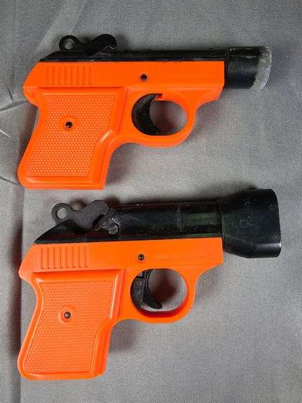 Includes (1) single shot launcher, (1) double shot launcher, (3) boxes of Screamer Siren cartridges and (2) boxes of Bird Banger cartridges.