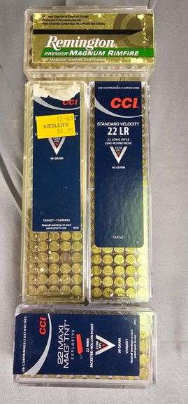 Includes (2) full boxes and (2) partial boxes (206 rounds) and (1) box of shotshell (20 rounds).
