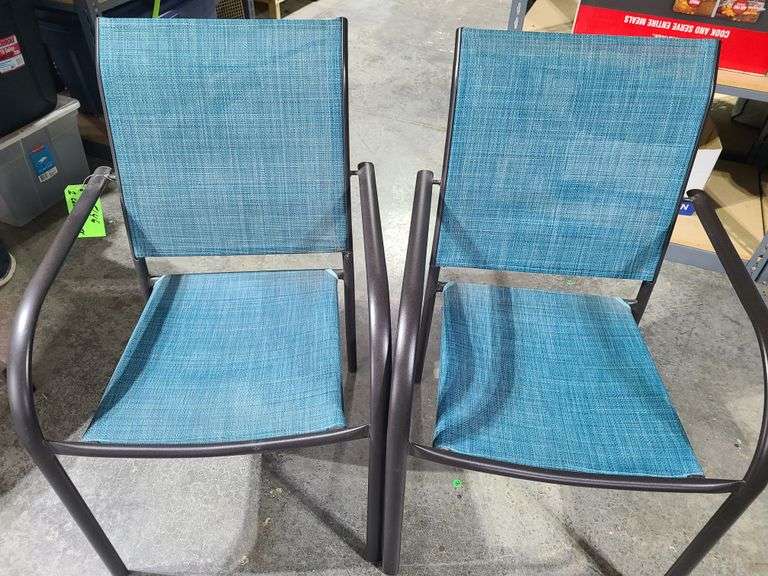 Two outdoor chairs, yard flags, several fancy flower pots, wind spinner, and more. In a tote with lid.