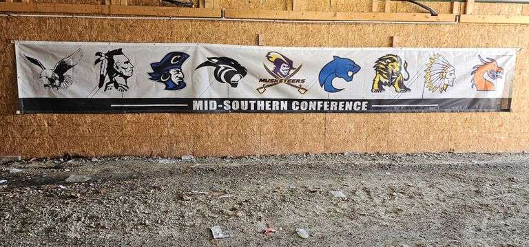 LOT 46 - Vintage MSC banner w/ mascots of 9 schools