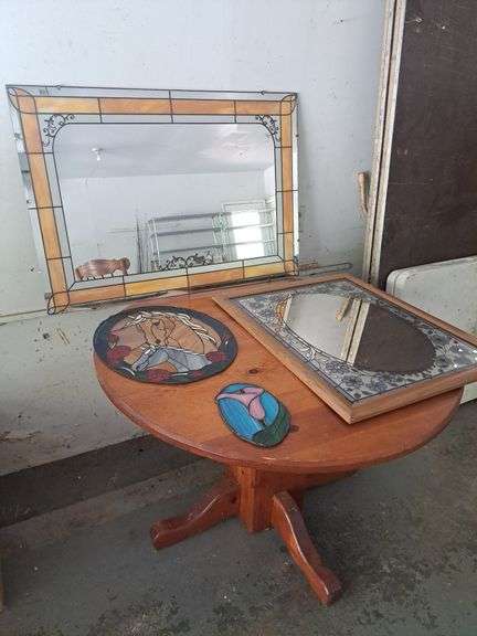 Two mirrors, and two other pieces. Large mirror measures 28x40. Other mirror measures 25x31.
